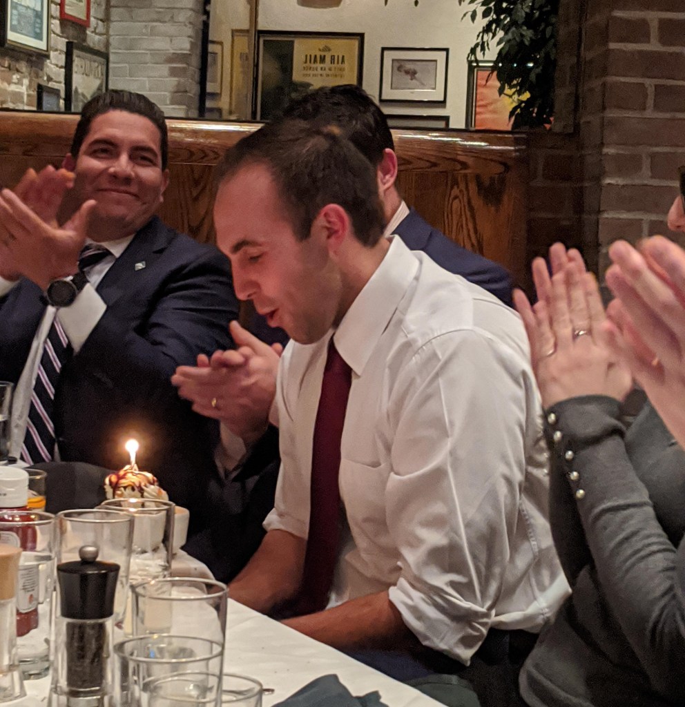 Celebrating Rocco Cunningham’s birthday at our D.C. finale dinner.