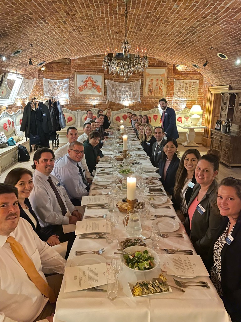 After saying goodbye to our guests from Humanosh, we enjoyed a visit from several members of the US Embassy. From FAS, Alicia Hernadez & local staff Anna Galica, from the State Department, Ryan Bowles, the Economic Section, Jon Cebra, the Public Affairs department, and Christopher Reed-Waddell, from the Consular Section, as well as Benjamin Coburn, from Political Affairs, who joined virtually. Each member of the embassy gave a detailed presentation, helping us understand the current affairs of Poland from an agricultural, political, and European Union perspective. At the end of the evening, we enjoyed the company of our embassy guests with a lovely, local meal at Ale Gloria.