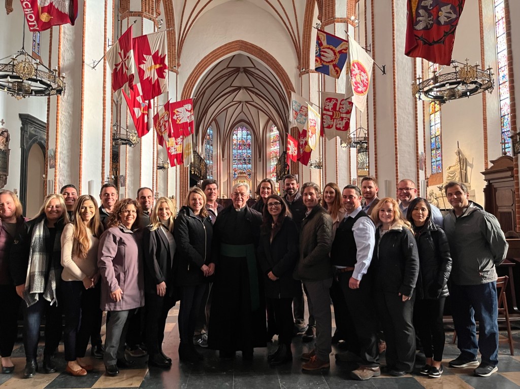 Our first stop at Old Town Warsaw gave Class 50 the chance to incorporate one of our international trip mottos – “pack your patience.” Our original plans for our first stop didn’t work out, but we were able to meet with Brother Marian Markiewicz of St. John’s Archcathedral, whose story includes his years of friendship with Pope John Paul II that he documented in a book called “The Culprit.”