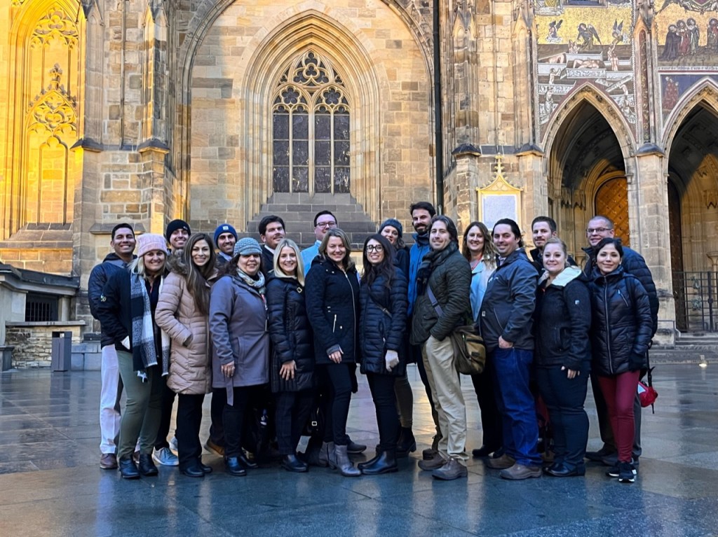 Our final stop before dinner was Old Town Prague, where we were able to take in more beautiful architecture and local culture. We saw the Astronomical Clock, a medieval astronomical clock attached to the Old Town Hall; it was installed in 1410, making it the third-oldest astronomical clock in the world and the oldest clock still in operation. We completed the evening by enjoying a traditional Czech dinner of pork pate, duck, roasted pork, spicy sausage, cabbage, dumplings and the Czech’s version of gnocchi drizzled with poppy seeds and caramel sauce. At dinner, we also celebrated the one-year work anniversary of California Agricultural Leadership Foundation’s Executive Vice President Abby Taylor-Silva.