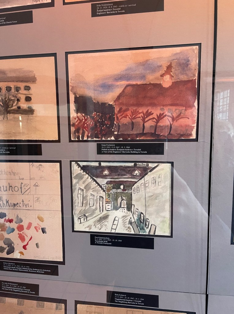 There is an exhibition which features the children’s drawings from Terezin that were done between 1942 and 1944. We learned that this concentration camp was meant to portray an image of a humane camp that housed Jews in stark contrast to the reality in order to convince Red Cross visitors that things were not as horrific as they were. The vast majority of the people in Terezin perished in the gas chambers of Auschwitz-Birkenau following the visit. For context, the Czech Republic has a population of 120,000 jewish people before the war and only 5,000 survived.