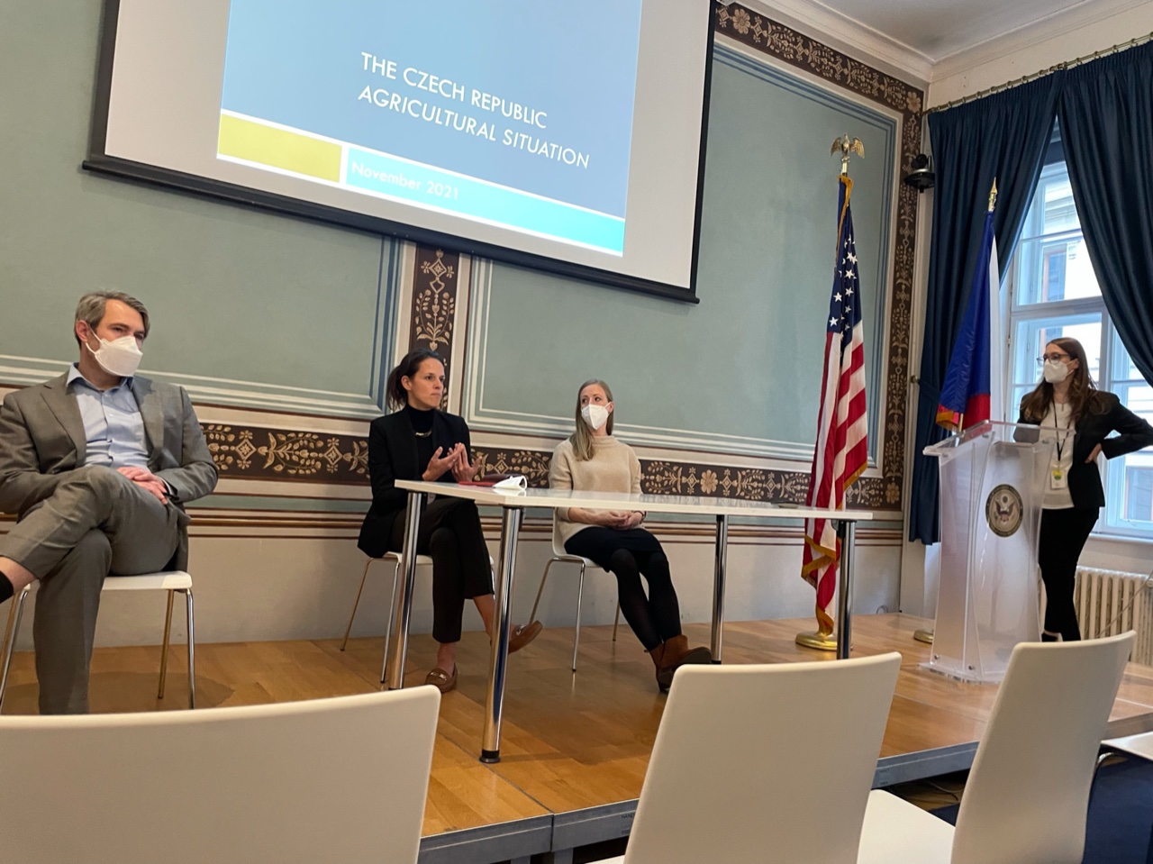 The Agriculture Specialist share that the amount of agriculture in the Czech Republic is comparative to the size of the state of South Carolina. Approximately half of their land is used for farming and it accounts for a mere 2% of their GDP. Their average farm size is 329 acres which is huge in comparison to other EU countries likely as a result of reconfiguring the land back to privatization from communism. It results in a lot of farmland being rented out rather than farmed by the owners.